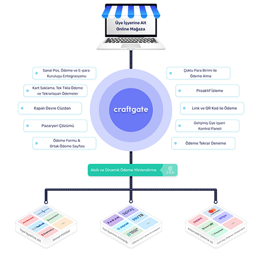 Ödeme orkestrasyonu; işletmelerin farklı ödeme sağlayıcılarına (bankalar, ödeme kuruluşları, alternatif ödeme yöntemleri) tek bir merkezi platform üzerinden teknik olarak erişebilmesinin ötesinde; tüm ödeme akışını veri ve kurallara dayalı olarak yöneten akıllı teknolojilerdir. Standart bir ödeme geçidi sadece veriyi iletirken; ödeme orkestrasyonu, gelen ödemeyi o an için en düşük maliyetli veya en yüksek başarı oranına sahip kanala yönlendirir (Akıllı ve Dinamik Ödeme Yönlendirme), kesinti durumunda işlemi otomatik olarak çalışan başka bir sanal POS'a yönlendirir ve tüm süreçleri tek bir panelden yönetilmesini sağlar. Craftgate, ödeme geçidi özelliklerini de kapsayan, bu teknik entegrasyon yeteneğini akıllı yönetim ve katma değerli servislerle zenginleştiren bir ‘Ödeme Orkestrasyonu’ platformudur.